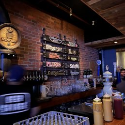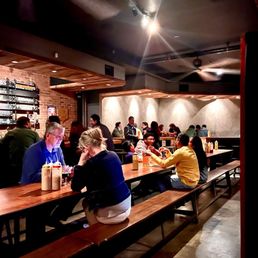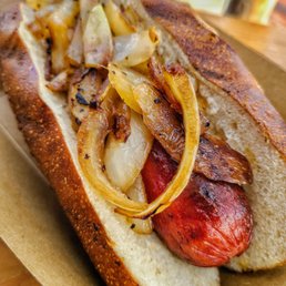These bratwursts are so delicious. I'm a fan of the bison and cheddar jalapeño, I dig the grinder breads, and my toppings are usually mushrooms, sautéed onions, and pickle. The beer options in the back are plentiful. Sodas available as well. Oh and water container is readily available. I also love the Belgian fries and if you want less bread try the drunken fries. Staff is always so friendly when walking in. The seating area is comfortably lit, I always love watching basketball here. Been here countless times and I'll keep coming more and more. Oh. And my favorite sauce is chipotle aioli.